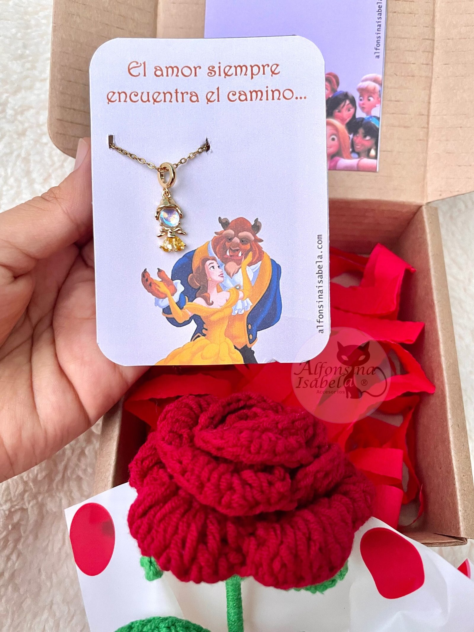 INCLUYE : Collar en Acero inoxidable + Rosa tejida a mano