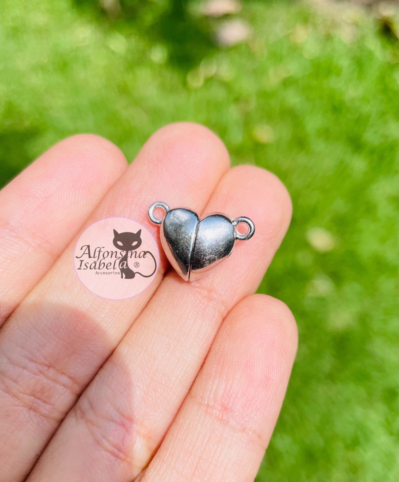 Añade un Imán en forma de corazón color plateado en tus pulseras o collares