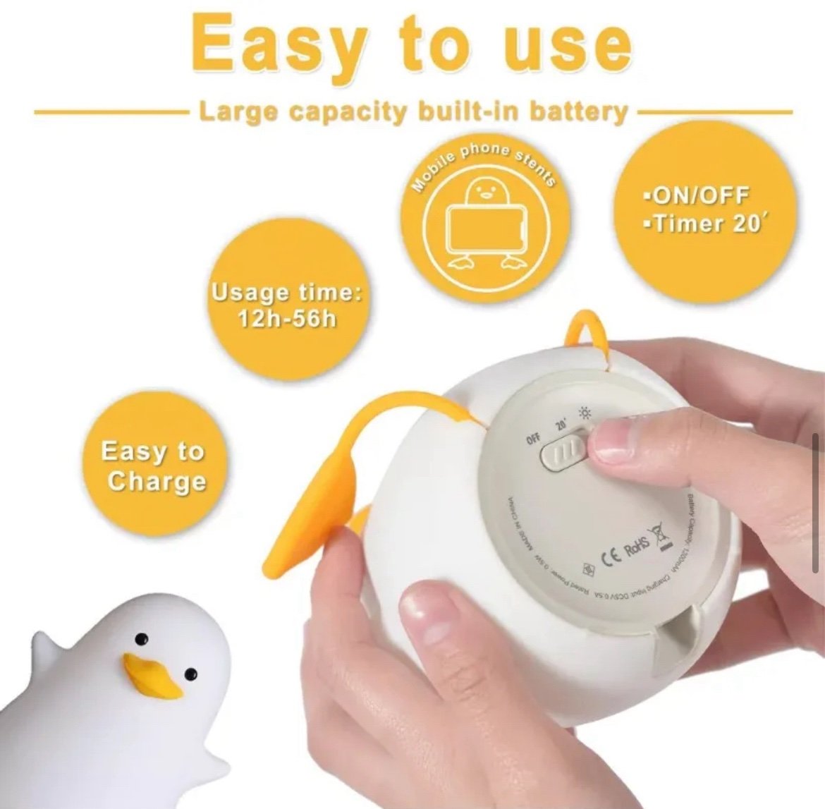Forma de pato lindo y suave, material de silicona tacto suave, atractivo, cómodo y buen uso.